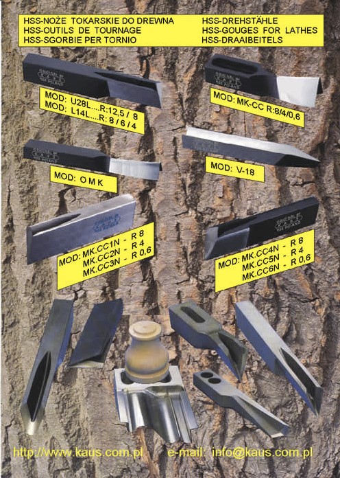 - šablonai ir profilių peiliai - HSS (pagaminti pagal modelį ar piešinį) tekinimo staklėms ir automatinėms tekinimo staklėms, pavyzdžiui: GENINI,